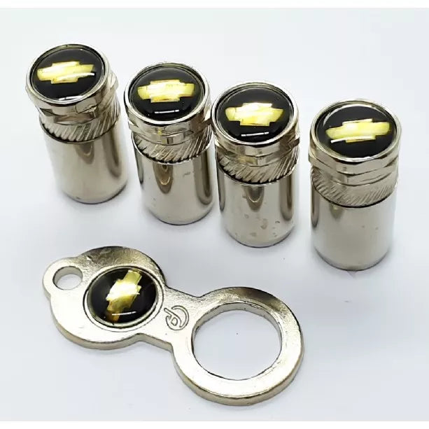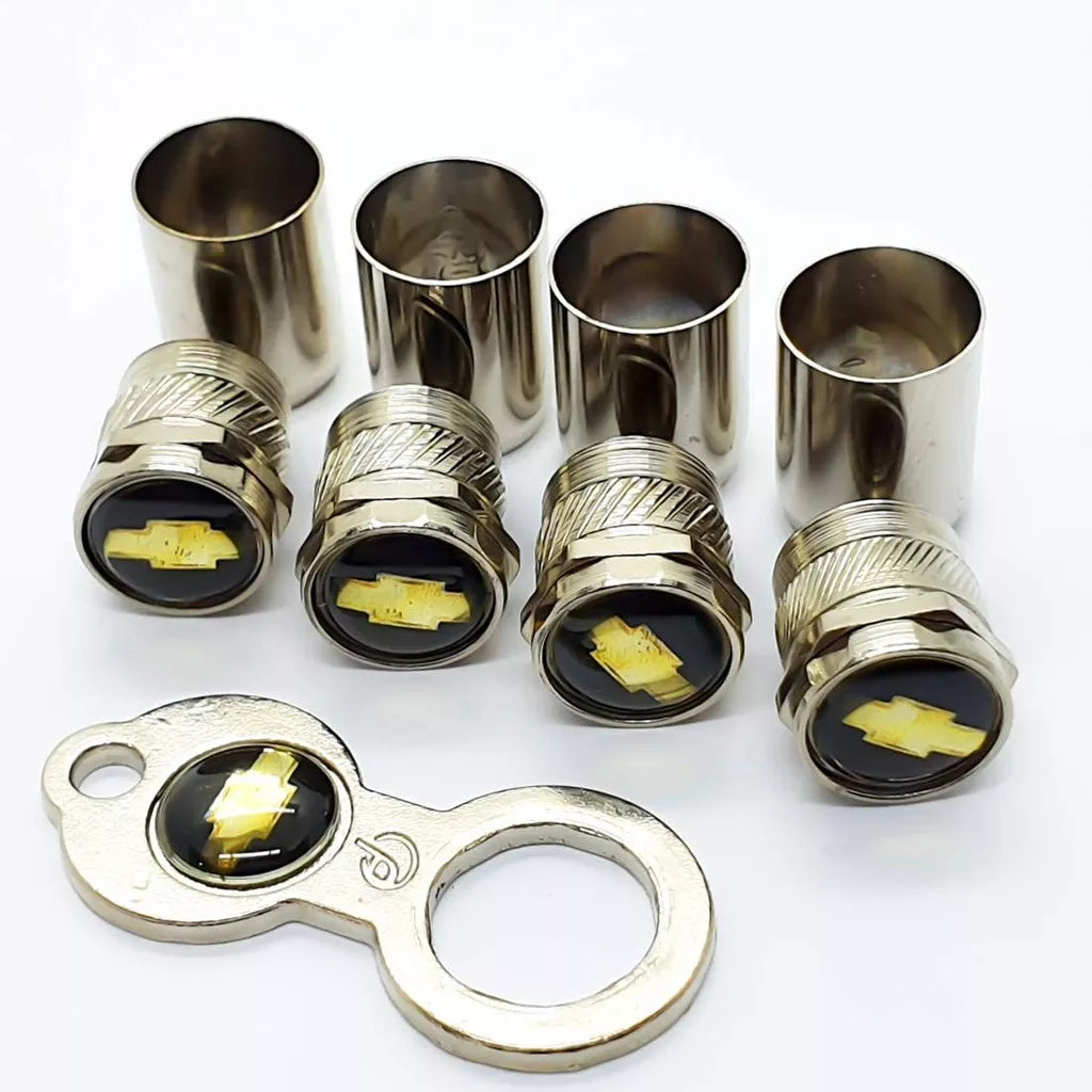 🔩🚗 Estilo e Funcionalidade: Kit 4 Bicos + Capa de Válvula de Pneu Chevrolet Cromado 🚗🔩