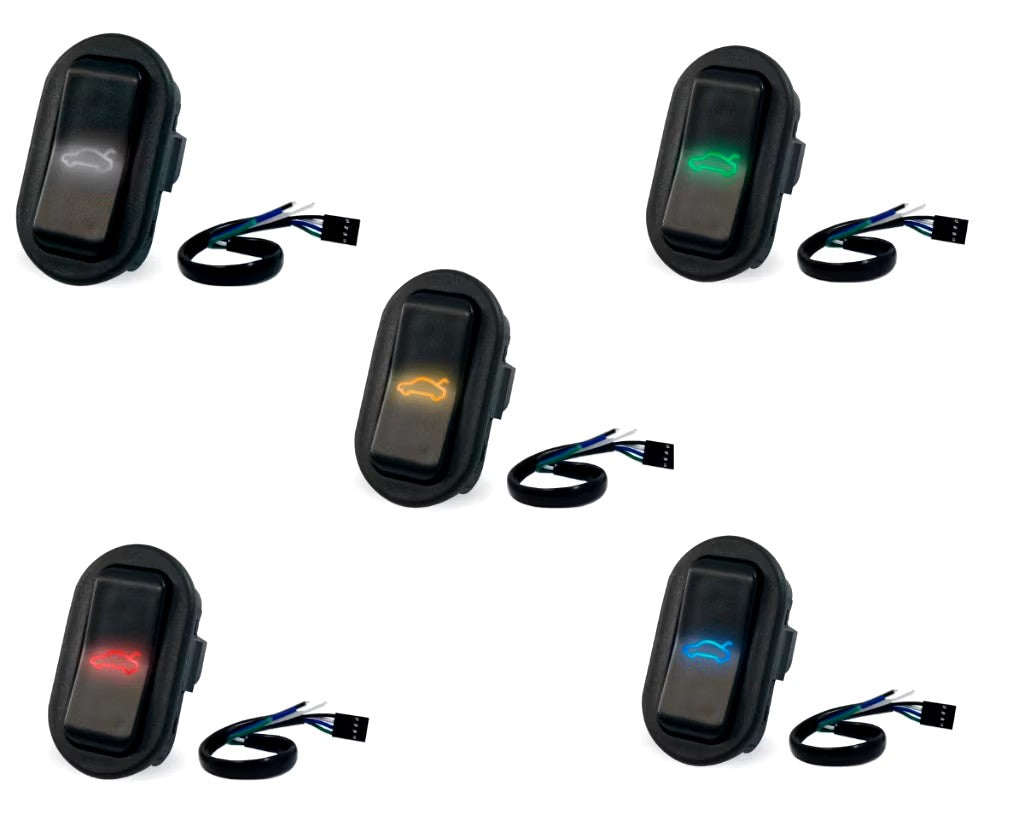 - 1 unidade - Botão destrava porta-malas com LED nas cores: laranja, azul, branco, verde, vermelho