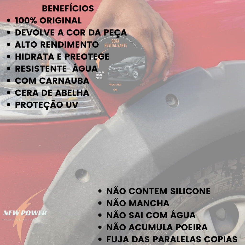 🚗✨ Renovação e Proteção: Kit Cera Revitalizante para Plástico, Couro, Para-choque, Vinil + Espuma de Aplicação ✨🚗