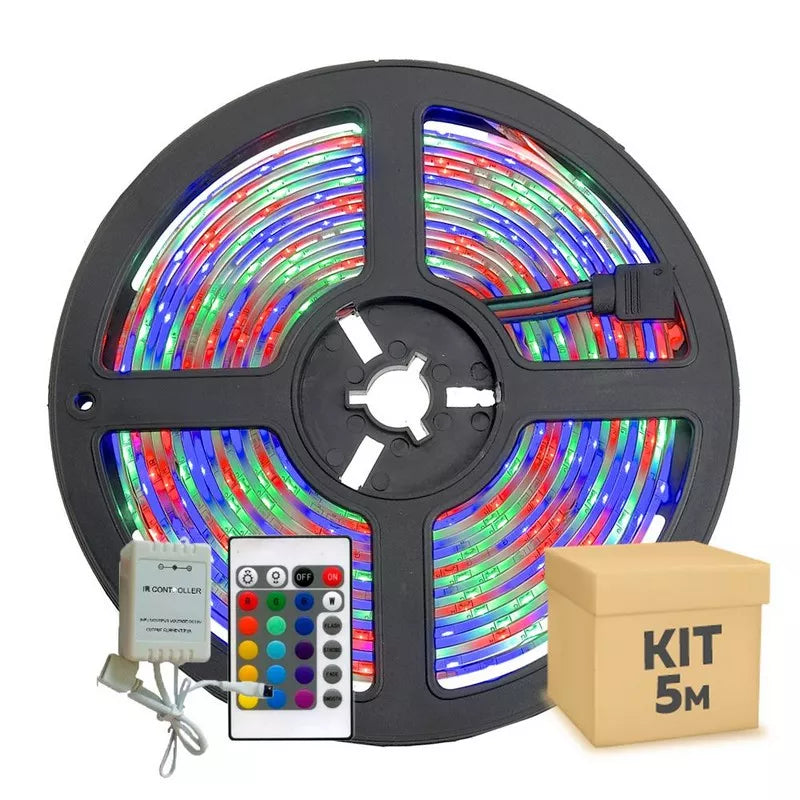- 1 Rolo com 5 Metros Fita Led RGB 3528 Prova D'água cola 3m