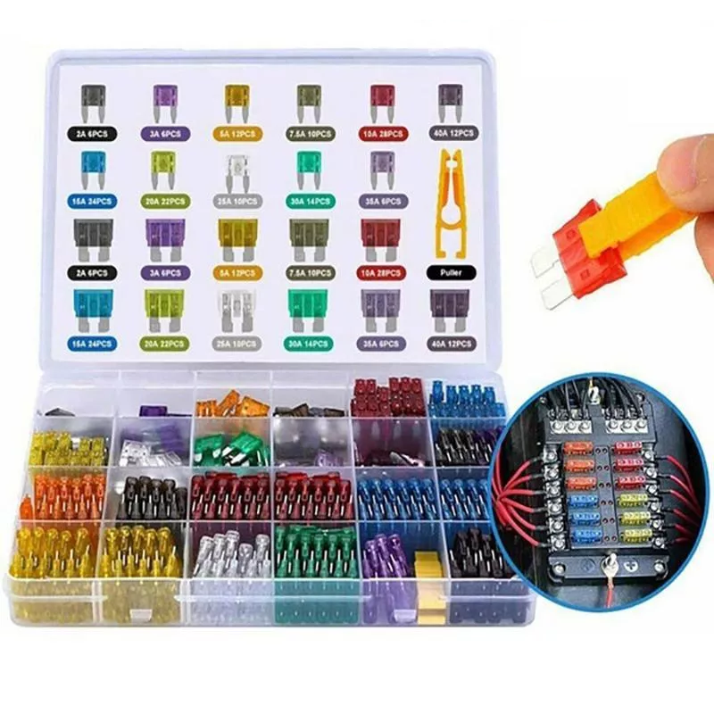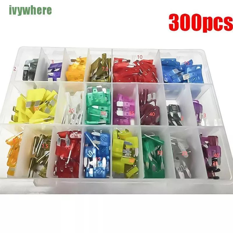 Kit 300PCS: Chave de remoção/instalação 1PC, 2Amp x 6PCS, 3Amp x 6PCS, 5 Amp x 12PCS, 7,5 Amp x 10PCS, 10 Amp x 28PCS, 15 Amp x 24PCS, 20 Amp x 22PCS, 25 Amp x 14PCS, 30 Amp x 10PCS, 35 Amp x 6PCS, 40 Amp x 12PCS, 2 Amp x 6PCS, 3 Amp x 6PCS, 5 Amp x 12PCS, 7,5Amp x 10PCS 10 Amp x 28PCS, 15 Amp x 24PCS, 20 Amp x 22PCS, 25 Amp x 10PCS, 30 Amp x 14PCS, 35 Amp x 6PCS, 40 Amp x 12PCS.