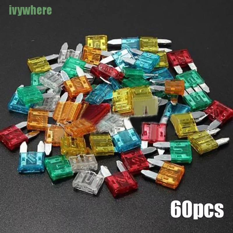 Kit 60PCS: Chave de remoção/instalação 1PC, 5Amp x 10PCS, 10Amp x 10PCS, 15Amp x 10PCS, 20Amp x 10PCS, 25Amp x 10PCS, 30Amp x 10PCS.
