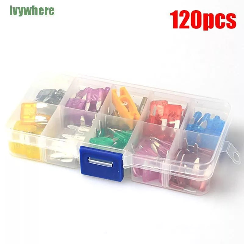 Kit 120PCS: Chave de remoção/instalação 1PC, 2Amp x 10PCS, 3Amp x 15PCS, 5Amp x 5PCS, 7,5Amp x 10PCS, 10Amp x 15PCS, 15Amp x 15PCS, 20Amp x 10PCS, 25Amp x 10PCS, 30Amp x 10PCS, 25Amp x 10PCS, 35Amp x 10PCS, 40Amp x 10PCS.