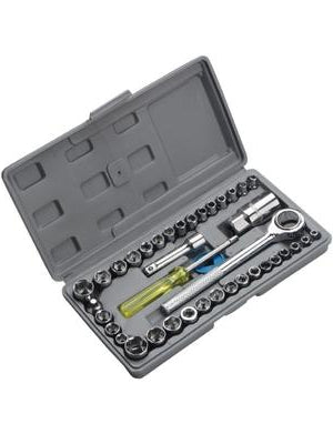 Prepare-se para qualquer trabalho mecânico com o Jogo de Soquete de 40 Peças, completo com uma chave catraca reversível. Este conjunto robusto e durável é projetado para resistir a pressões e abrasões, garantindo que você tenha as ferramentas certas para lidar com uma ampla gama de projetos automotivos e de manutenção. Confira seus destaques: