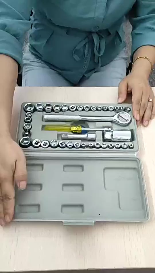 Jogo De Soquete 40 Peças Chave Catraca Reversível Resistente à Pressão Resistente à Abrasão