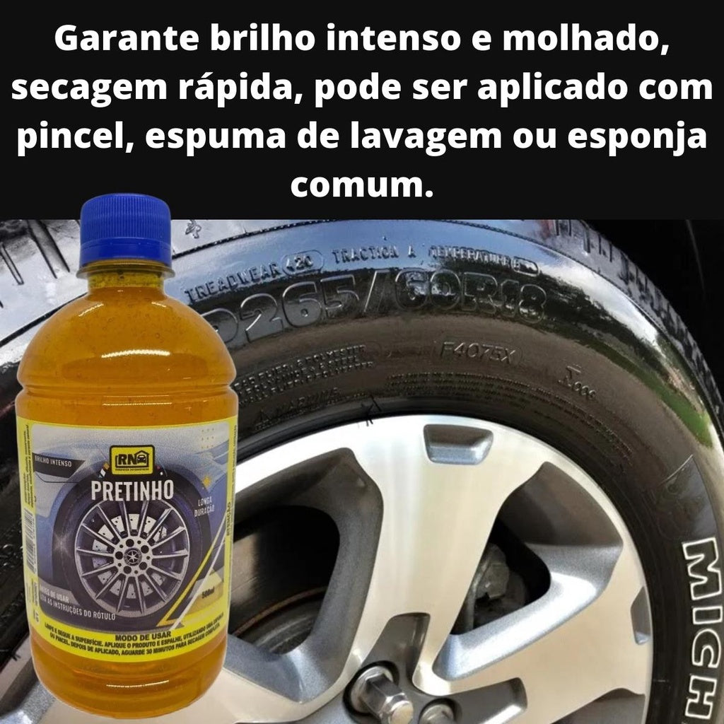 🌟 Brilho Duradouro: O Pretinho Baba de Camelo proporciona um brilho intenso e duradouro em superfícies de borracha, plástico e vinil, revitalizando a aparência do seu carro.