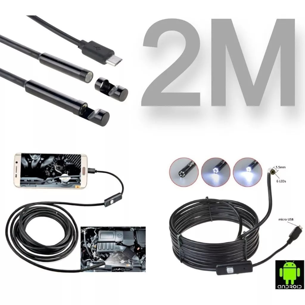 Micro Câmera Endoscópica USB Sonda Celular/PC - 2 Metros