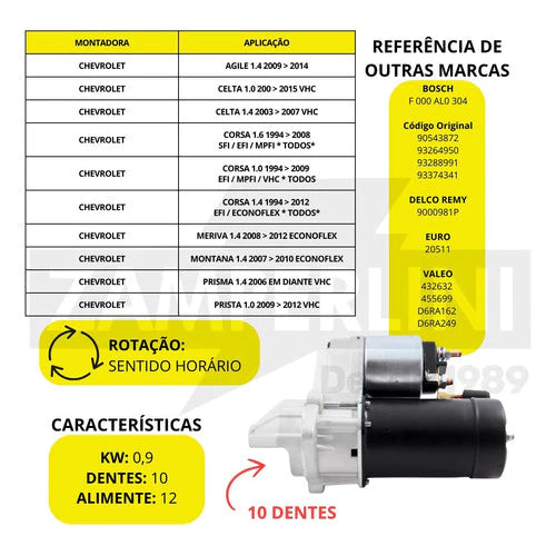 💪 Compatibilidade Ampla: Este motor de arranque é compatível com os modelos Chevrolet Corsa 1.0 e 1.6, bem como com o Chevrolet Celta 1.0 e 1.4, garantindo o ajuste ideal e o funcionamento eficiente.