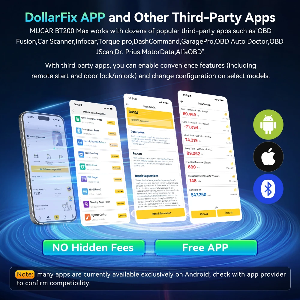 ✅DollarFix Free APP, funciona com dezenas de aplicativos populares de terceiros, envia como Torque, BimmerCode, Dashcommand, AlfaOBD (precisa verificar a compatibilidade)