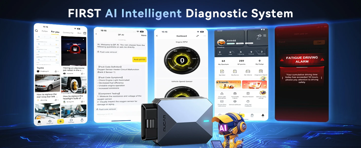 MUCAR BT200 Max é o primeiro scanner bluetooth obd2 com sistema de diagnóstico AI.