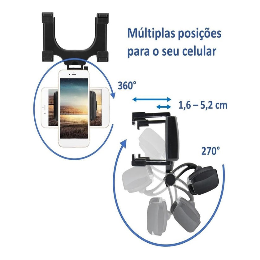 Suporte de Celular Para Retrovisor Rotativo Abs Seguro e Firme