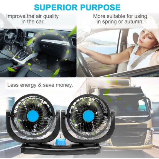 🌀🚗 Refresque-se em Viagens: Ventilador de Cabeça Dupla para Carro 🚗🌀