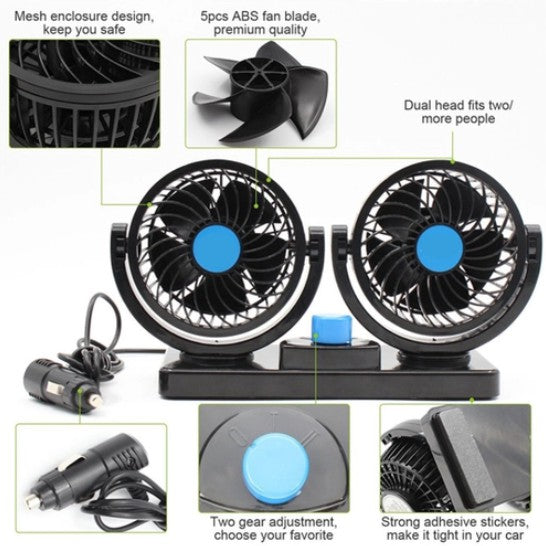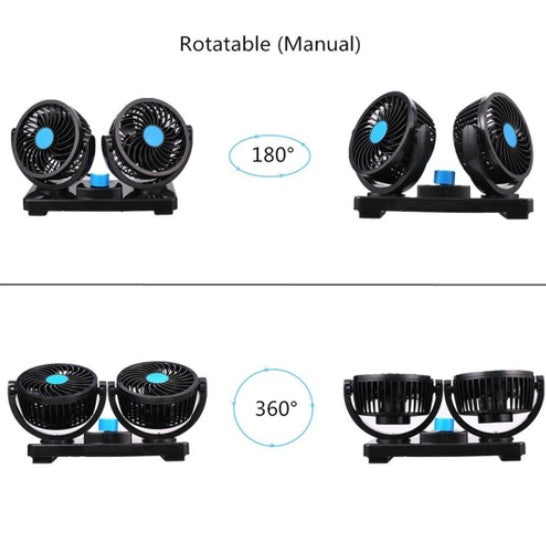 Ventilador De Cabeça Dupla Do Carro Veículo Automóvel Dc 12v/24v Rotação 360°